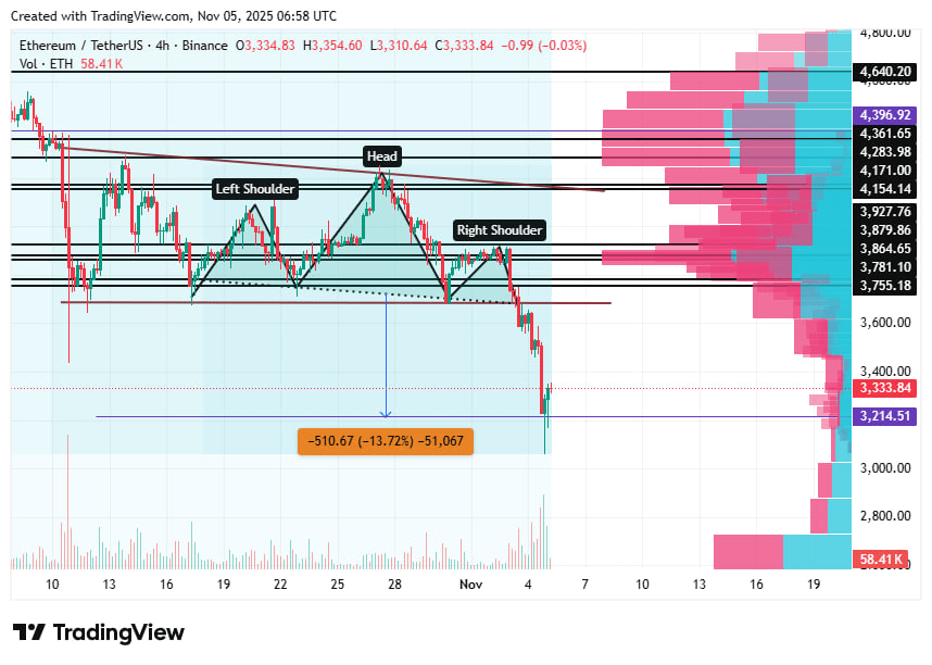 • Support: $3,250 – $3,280 — the area where limit buy orders are concentrated.