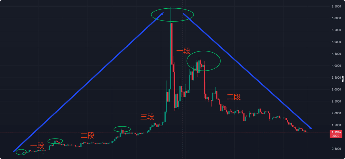 By this stage, the harvesting is basically over, and what remains is just the aftermath in the tail-end of trading, with a large number of people trapped and an explosion of volume, the market is in an uproar, and directed strikes against KOLs have been completed, feeling comfortable; the main point is that there is still no issuance of tokens, it remains absolutely high-controlled, allowing for free market competition, and if there is a chance to do a three-stage again, it doesn’t matter if there isn’t.
