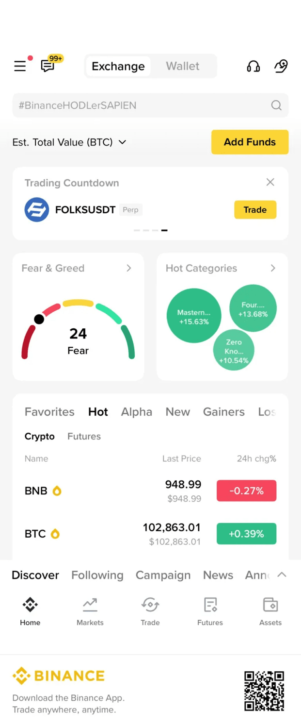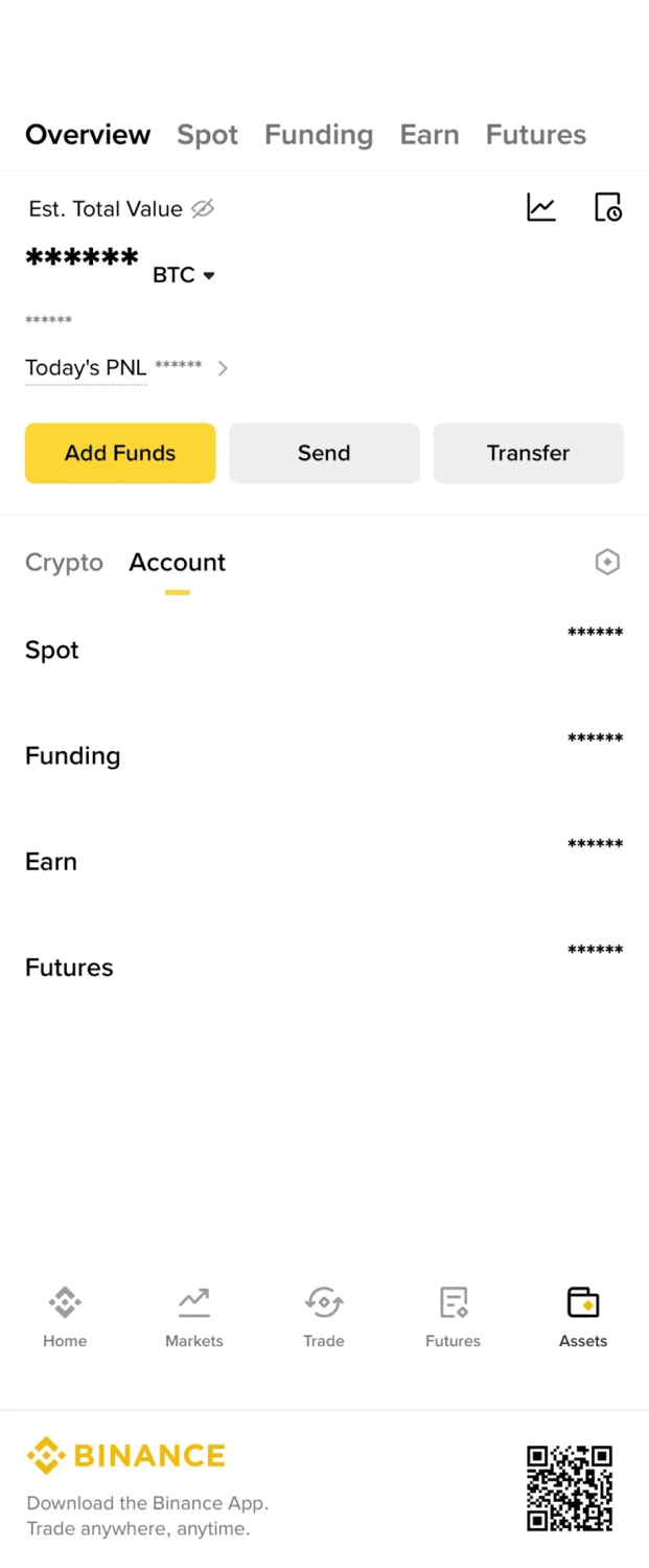 After opening the Binance app, go to the 'Assets' section from the bottom menu, then tap on 'Wallet Overview' to view your total balance.