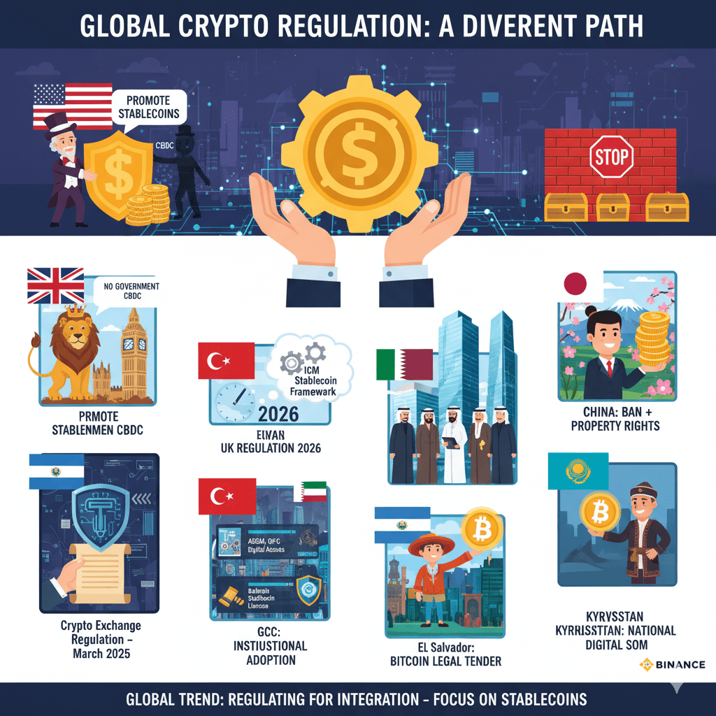 General trend: Governments are moving towards more precise regulation of cryptocurrencies, with a global focus on stablecoins to integrate them into the official financial system, showing clear variations in Asia between tightening in China and openness and adoption in Japan and Central Asia.