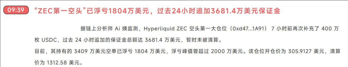 This morning, I came across on-chain data: ZEC's largest short position is completely panicking! Just 7 hours ago, they replenished 4 million USDC and have thrown down 36.81 million USD in margin over the past 24 hours. Despite this, they still can't hold on, and now with a short position of 34.09 million, they've already lost 18.04 million! At the highest point, the floating loss exceeded 20 million, but the liquidation price is hanging at 1312 USD.