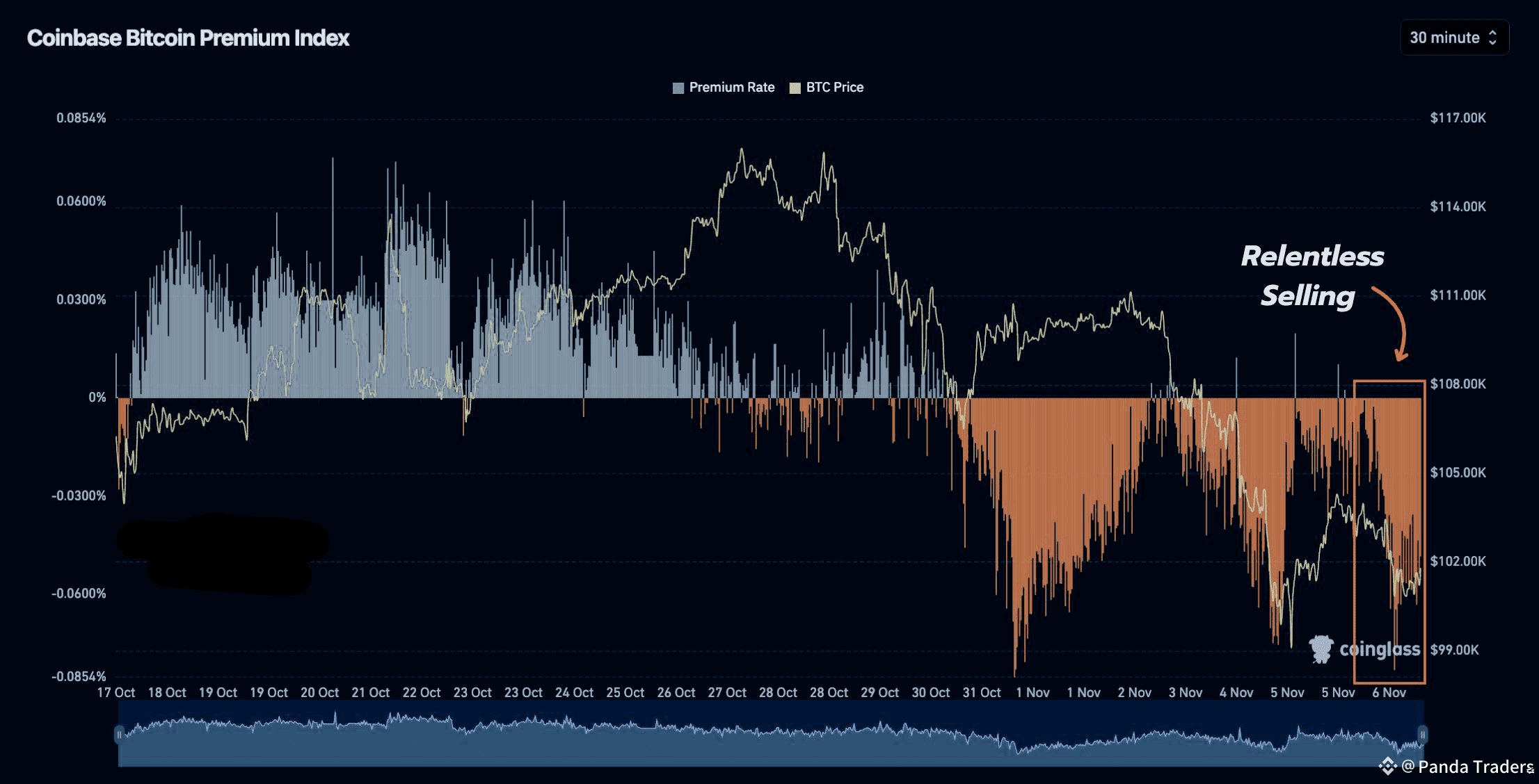 The Coinbase Bitcoin Premium Index has turned deep red meaning U.S. traders are selling BTC aggressively compared to the rest of the world ๐บ๐ธ๐