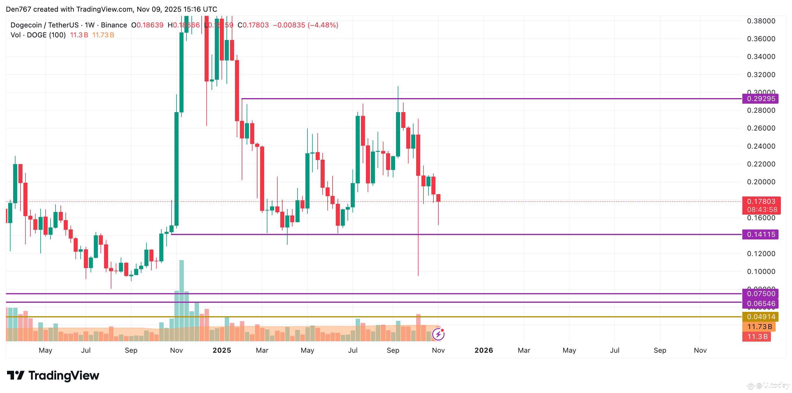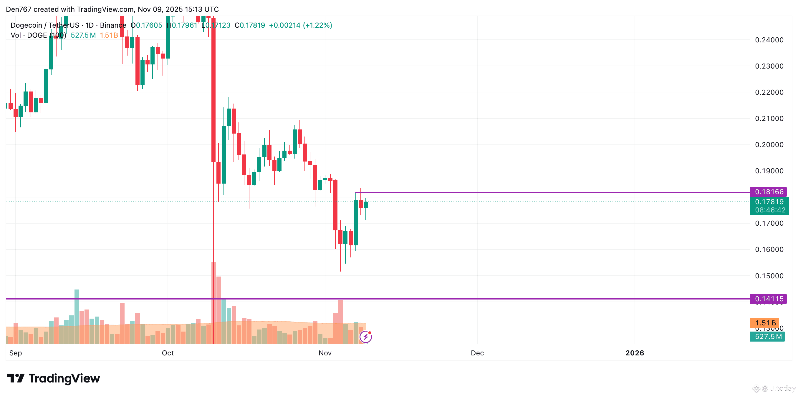 If a breakout happens, the accumulated energy might be enough for a continued upward move to the $0.19-$0.20 range.