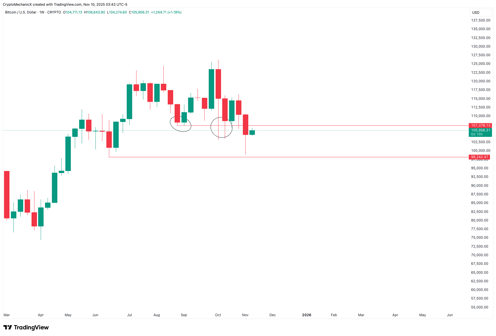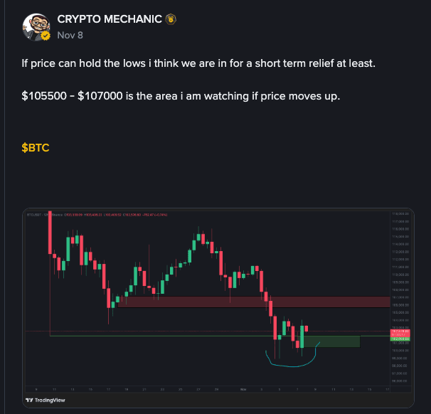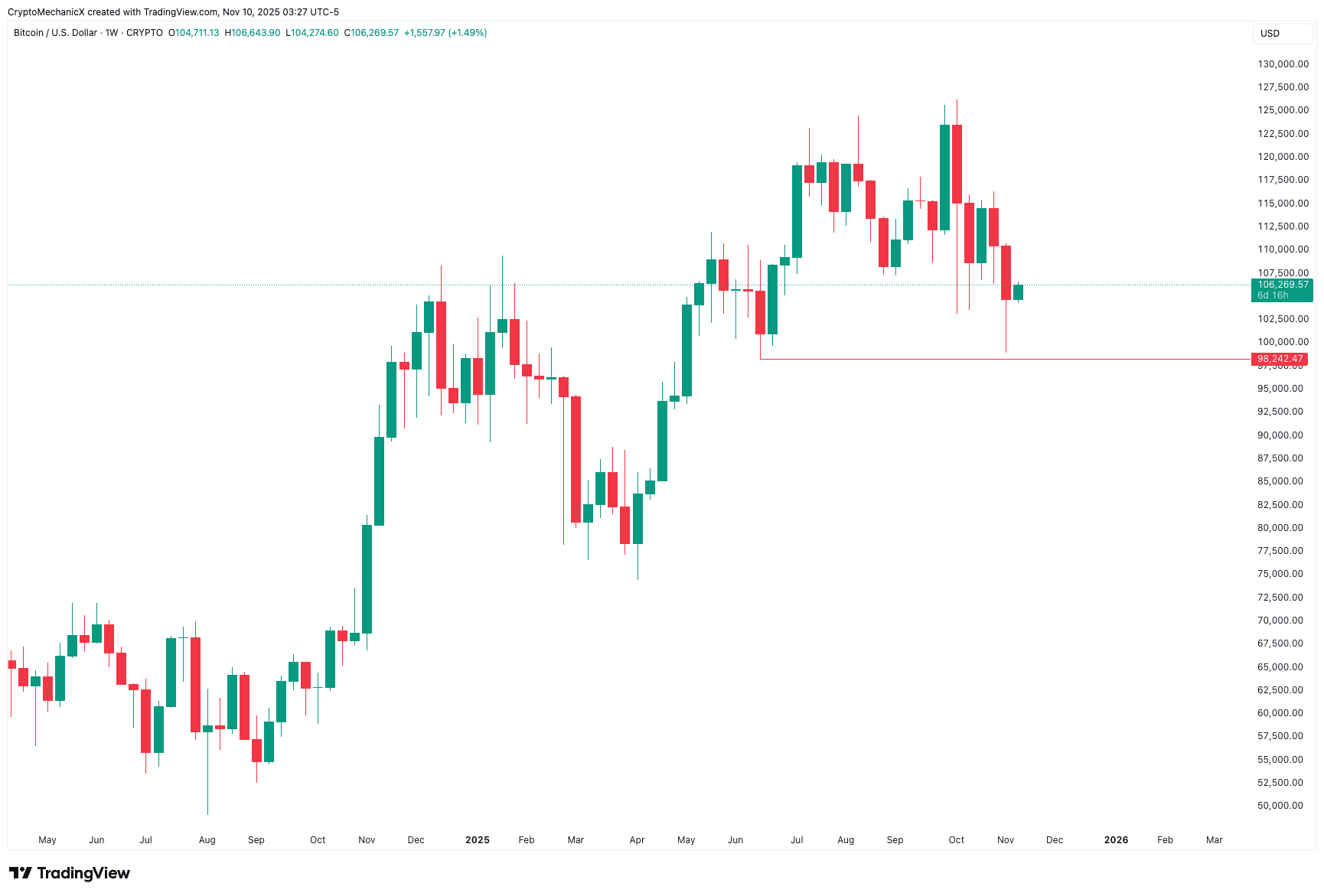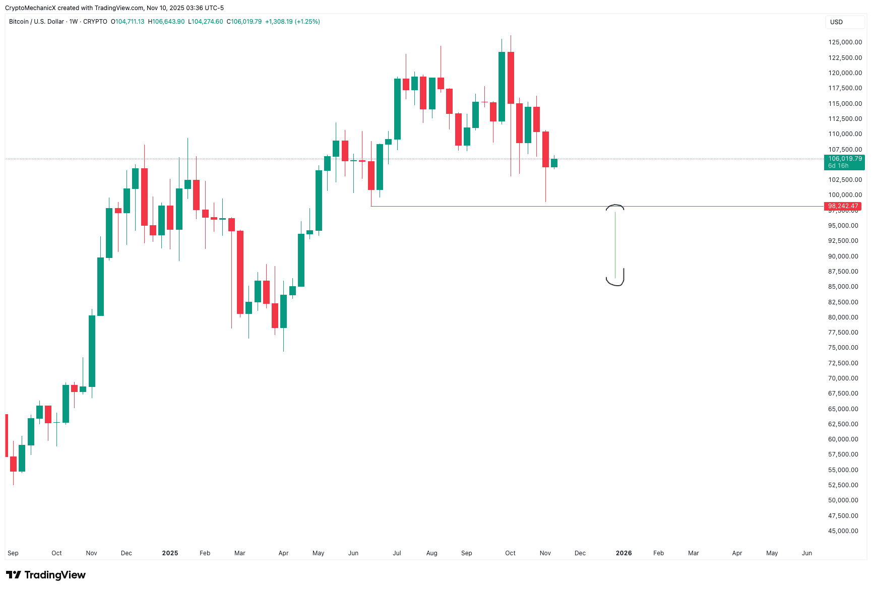Bear in mind, if we get a weekly close below $98K, it will open room for more downside. We’ll talk about it once it happens.