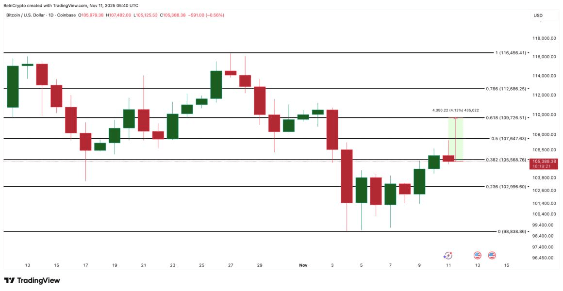 Continued accumulation could support Bitcoin's recovery and help test key resistance levels. The first test is at $105,500 — an area that has rejected moves since November 9th.