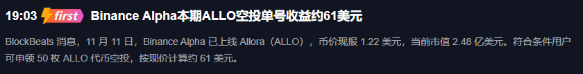 First, let’s look at the news: Allora (ALLO) is launching on Binance Alpha, is the airdrop order number making an easy $61?