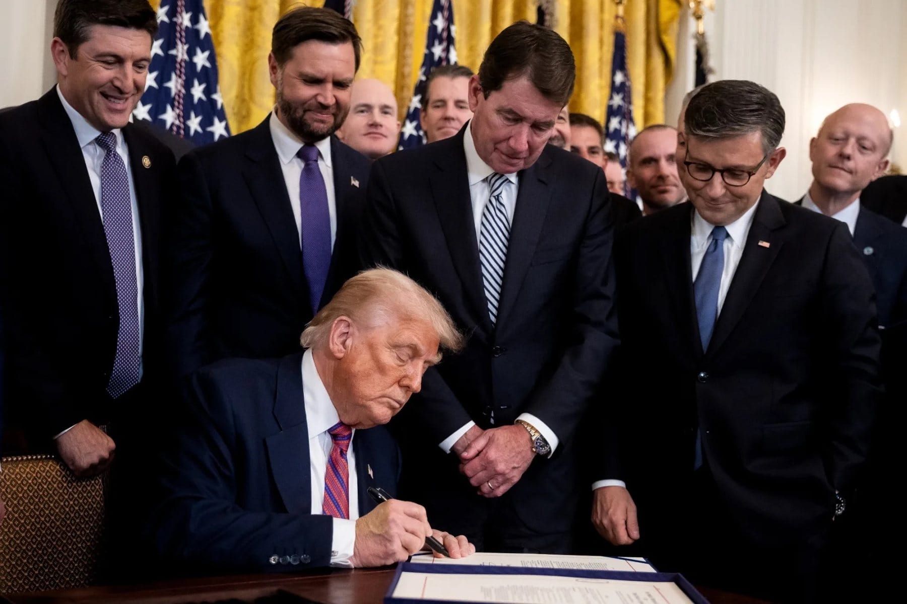 On July 18, 2025, U.S. President Trump held a signing ceremony for the (GENIUS Act) at the White House, attended by Circle CEO Jeremy Allaire (top right). Photographer: Francis Chung / (Politico) Magazine / Bloomberg