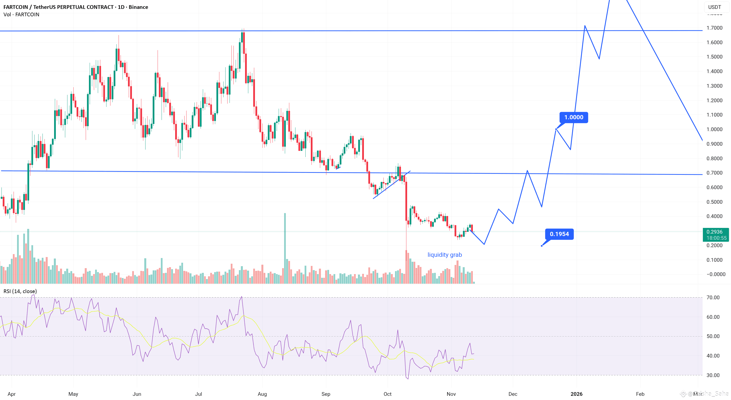 Fartcoin bull thesis. I expect one last capitulation under 0.2 and after that the bottom should be in and we have one last rally before the cycle ends and we enter a bear market.