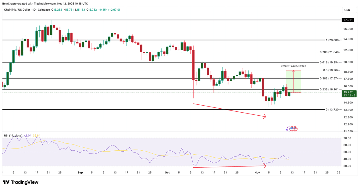 Technically, LINK prices recorded a new low between October 10 and November 4, while the Relative Strength Index (RSI) — which measures buying and selling strength — recorded a new high. This rare divergence, which tends to appear before trend reversals, indicates hidden accumulation beneath the surface. Regarding the current trend, LINK has decreased by about 33% over the past three months, making the recent reversal theory more significant.