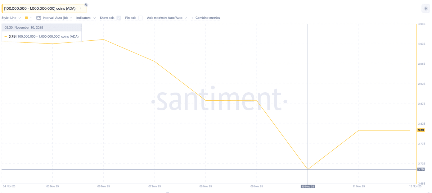 Cryptocurrency whales are buying Cardano again, but this time they seem to be more cautious. Large ADA holders owning between 100 million and 1 billion tokens have increased their holdings from 3.7 billion ADA to 3.8 billion ADA since November 10.