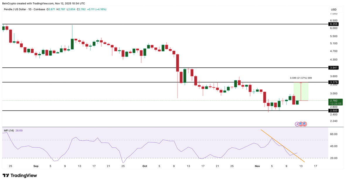But if PENDLE drops below $2.50, the MFI breakout may fail, and short-term selling may resume. That could reveal new lower levels for this DeFi token.
