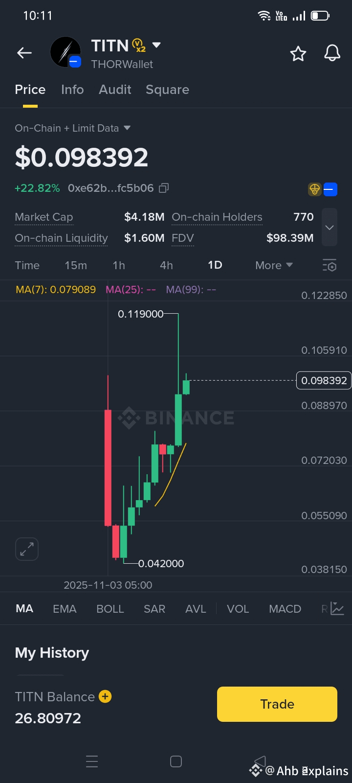 It was November 3, I told you guys to buy $TITN at price 0.06 After my call it pumped 100% and price went to 0.119 which was amazing ๐ค๐ฅณ๐.