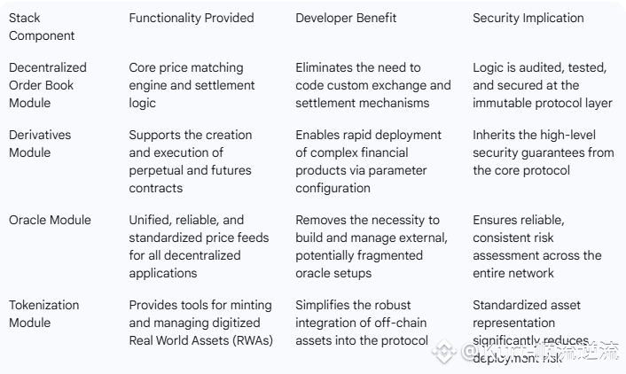 When dissecting the foundation of this modular approach, one must first recognize the architecture of the Core Infrastructure Modules. Because Injective is constructed using the Cosmos SDK, it benefits from a framework that natively supports modularity. Crucially, Injective has heavily customized this foundation specifically for high-stakes finance. The stack includes essential, non-negotiable financial primitives integrated directly at the protocol level: a Decentralized Order Book Module, a Perpetuals Module for derivatives, and a Standard Oracle Module. These components are best understood as built-in operating system services. Developers bypass the need to deploy basic contracts for trading logic; they simply call upon the protocol’s integrated modules, thereby instantly inheriting the network’s shared security and core functionalities. I recall once spending an entire weekend trying to debug a simple Solidity function that was ultimately flawed due to an array index error—a type of low-level risk this modular abstraction is designed to eliminate.