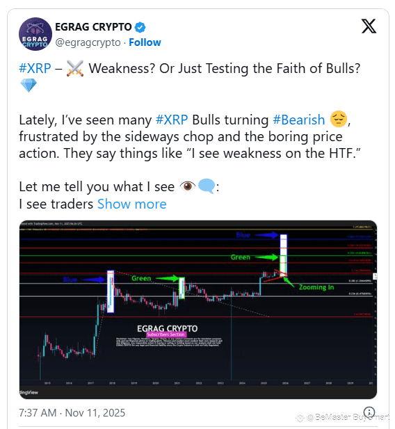 Egrag Crypto acknowledged that the market’s current stagnation has led many bullish traders to question their positions. He criticized what he described as premature pessimism from participants frustrated with XRP’s pace of movement.