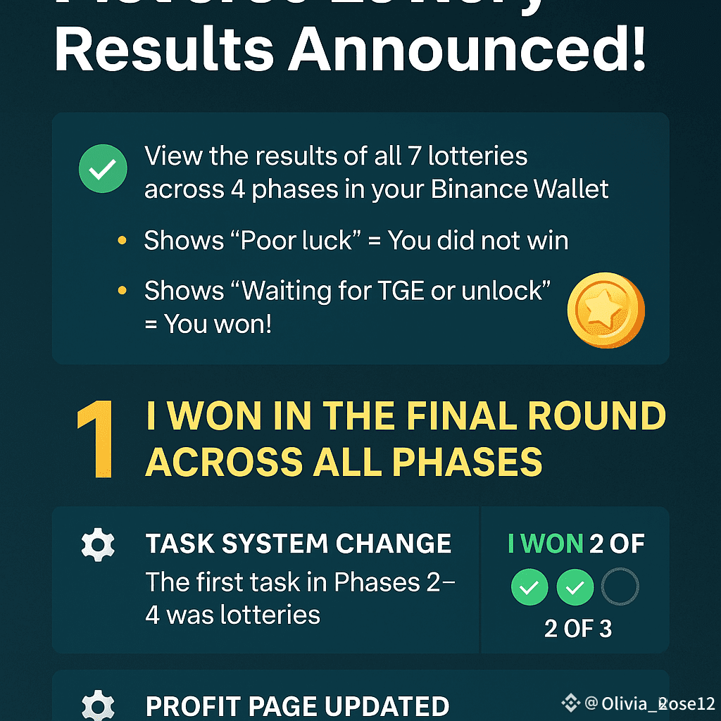 All seven lotteries across all four phases of Pieverse have officially been announced, and the results can now be checked directly in your Binance Wallet.