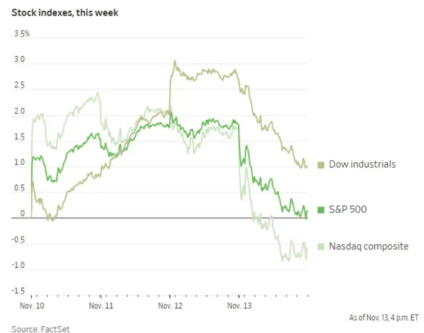 The U.S. government shutdown has ended, the release of economic data has been postponed, and investors are reassessing the prospects for a Fed rate cut in December, with U.S. stocks recording the largest single-day drop in a month on Thursday.