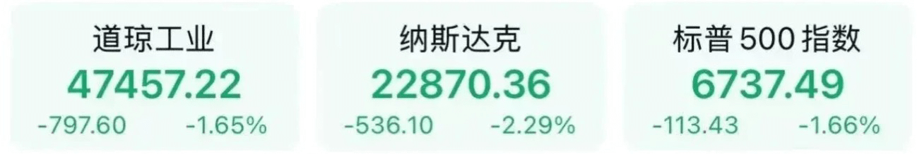 The Dow Jones Industrial Average closed down 797.60 points, a decrease of 1.65%, at 47457.22 points, moving away from its historical closing high.