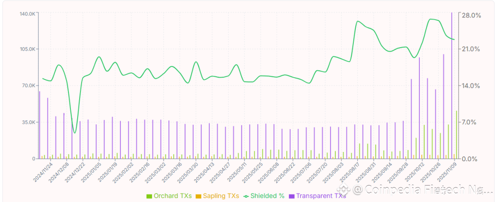 This in the same span showed that Sapling shielded transfers rose from 2,247 to 4,490, which is a 2× growth. While Orchard shielded transfers showed 4× growth from 36,283 to 139,844.