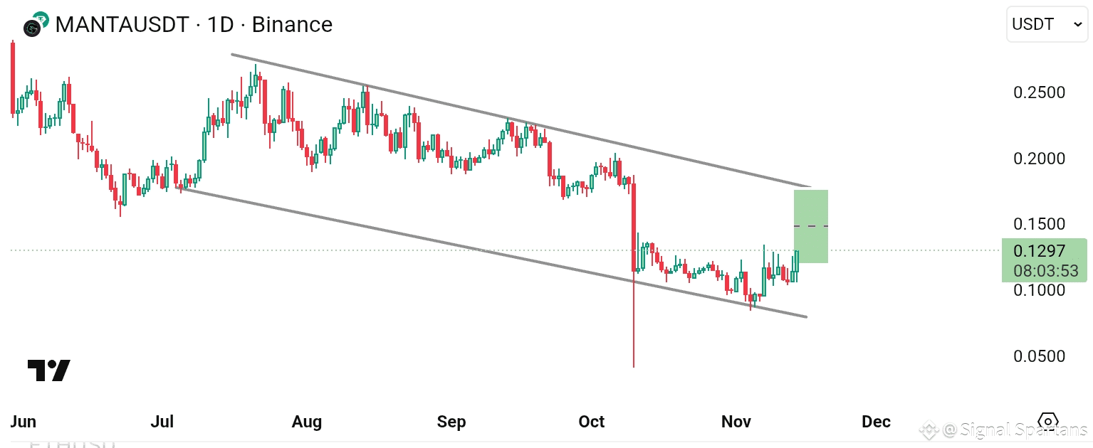 $MANTA just delivered the breakout exactly as shared earlier in the morning 🚀. The price has cleanly pushed above the descending channel resistance, confirming a bullish reversal setup 🦬📈.
