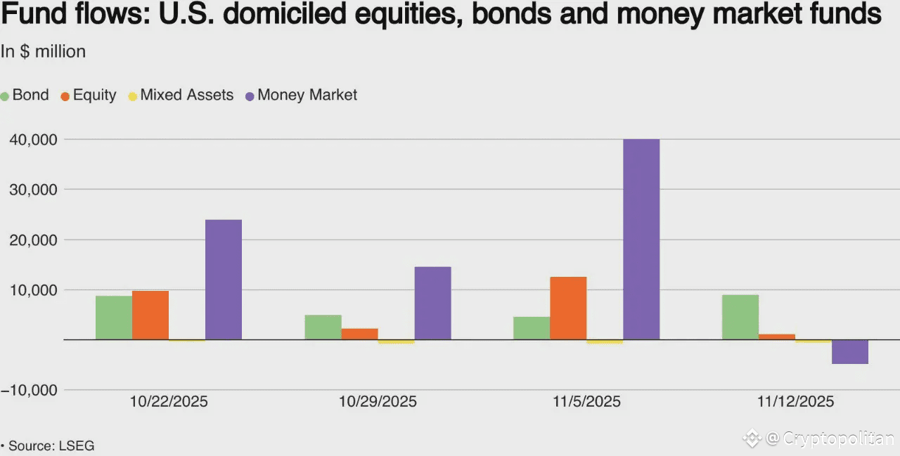 Source: LSEG, Weekly flows into US equity, bond, and money market funds in $ million