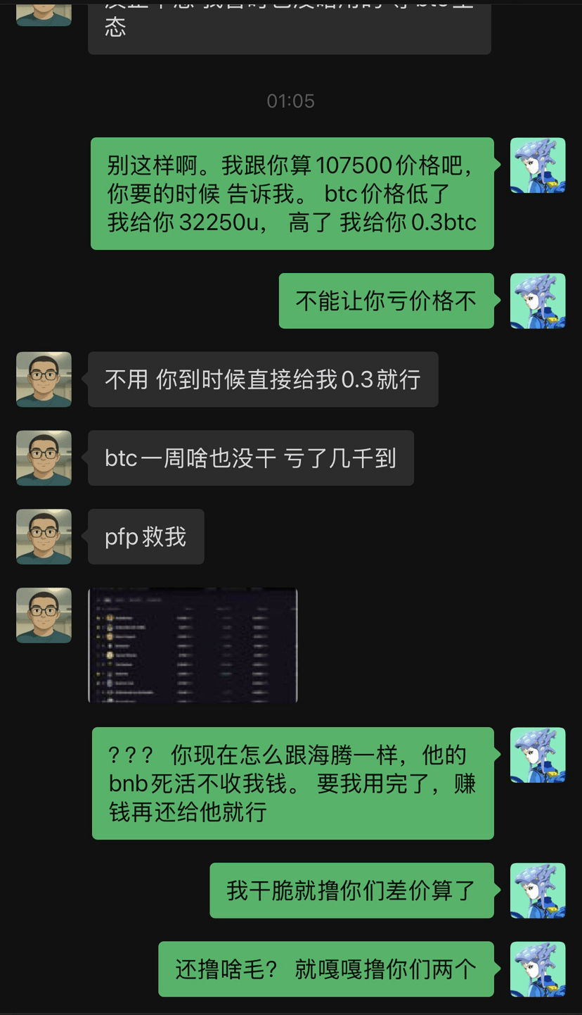 Another friend who lent me 0.3BTC is a netizen I met a few years ago who is into tricks. He was among the first batch of people to benefit from the tricks, and he was the one who spent 7*14 hours on voice calls teaching me how to buy IPs, how to use multiple accounts, how to do the three-piece set, and how to complete tasks. Every time there was a new offering, if I overslept, he would always help me bet 1000 dollars. If he made a profit, he would directly send me the profits the next day; if he lost, he would silently bear it himself and wouldn’t tell me he helped me bet.