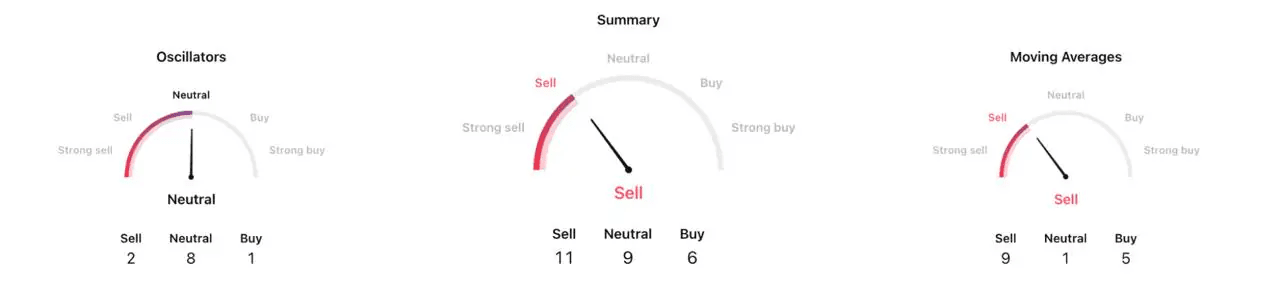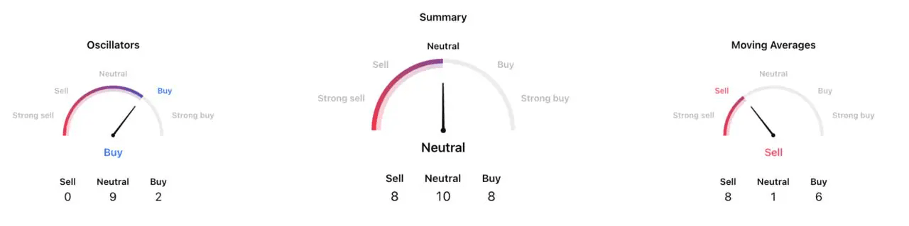 LTC is trading around $100, with a daily volume of about $930 million. Over the past week, the coin has risen by about 14%, indicating signs of renewed activity. However, the overall trend remains uncertain. Technical indicators show a balance between buyers and sellers, and there is currently no evidence of a clear breakthrough.