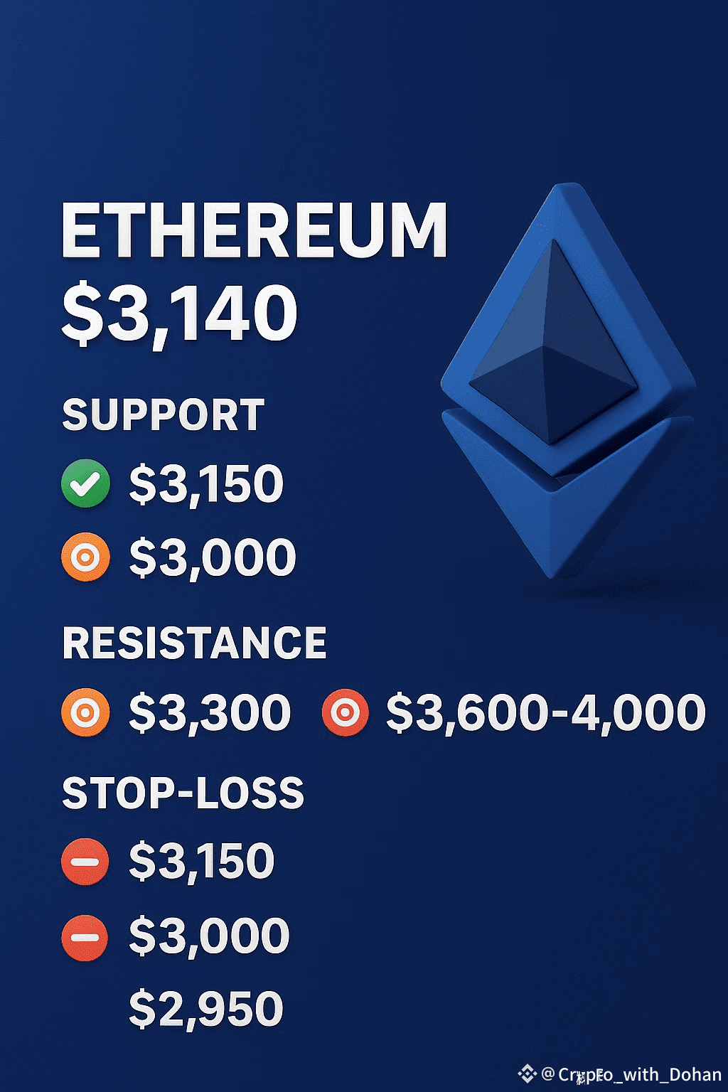$ETH is hovering around $3,140 and traders are eyeing critical zones for entries, stops, and targets.