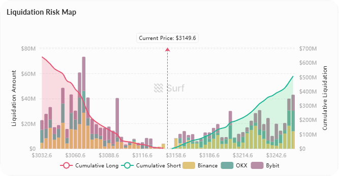Upside Resistance: $3,155 starts cumulative $508M short liquidations