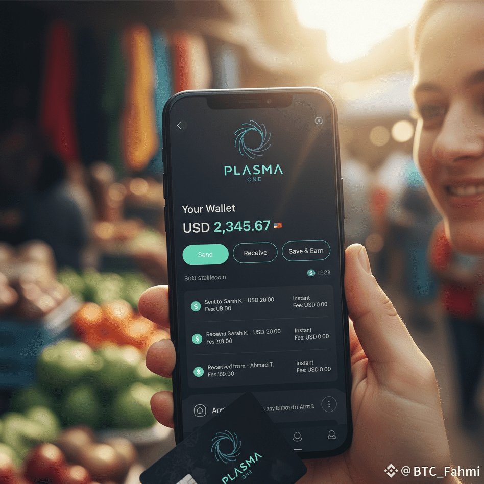 Plasma did not launch as an empty chain. It already has large stablecoin liquidity a bridge that lets you move real Bitcoin onto Plasma as pBTC and existing tools for lending, swapping and DeFi. On top of that there is a product called Plasma One which is basically a stablecoin neobank built on the Plasma network. The idea is that you use a simple app that looks and feels like a modern banking or finance app. Inside that app you can save in USDT and earn yield send money globally in seconds and even use a virtual or physical card for spending. All the blockchain pieces run in the background. The user only sees balances and transactions not gas fees and chains.