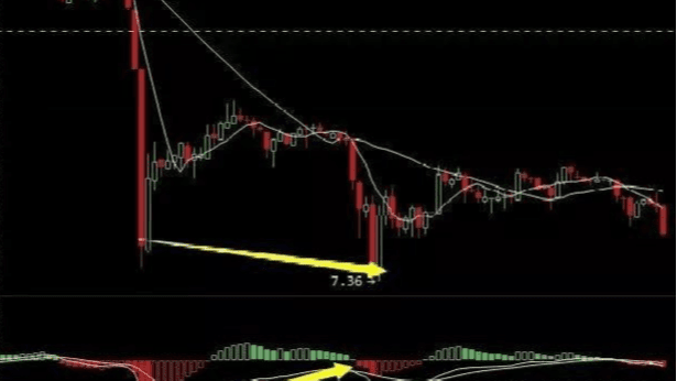 "Duckling Emerging from Water": After the DIF crosses the DEA line below the 0 axis, it does not cross the 0 axis or only crosses it slightly before returning below the 0 axis, and then crosses the DEA line downwards. A few days later, it crosses the DEA line again (as shown in the figure). This pattern is a bottoming pattern that appears when the selling pressure is exhausted after the price has fallen and bottomed out. It should be interpreted as a bottoming and rebound signal, and you can choose an opportunity to enter the market.
