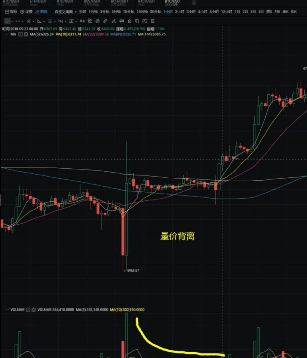 In the stock market, the relationship between volume and price has many forms and uses, such as "volume increases, price increases." This means that volume is continuously increasing while the price is steadily rising. This doesn't apply to the cryptocurrency market because the amount of capital is limited, making it difficult to achieve sustained volume and price increases. If you look at historical charts, charts showing a steady increase in both volume and price are practically nonexistent. The cryptocurrency market favors sideways movement, sharp rises, and sharp falls. However, there's one point to be aware of: volume-price divergence. Simply put, if after a sudden price surge, fewer people are buying, and the market isn't as active as before, be careful; the good times might be coming to an end. For example, Bitcoin surged on July 18, 2018, followed by increased trading volume. It surged again on the 24th, followed by another surge, and then surged again on the 27th. However, the volume clearly shrank, indicating that buying power was no longer supporting the price, which easily led to a price decline.