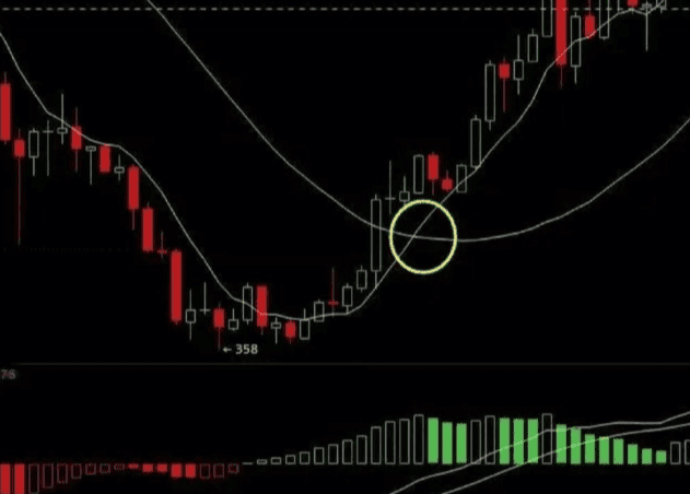 However, a golden cross below the zero axis is not 100% reliable; it only indicates that the decline may be about to stop. To be on the safe side, you can wait for the white line to cross the zero axis upwards and go all in. You can see in the following figure that after breaking through the zero axis, there will be an accelerated rise.
