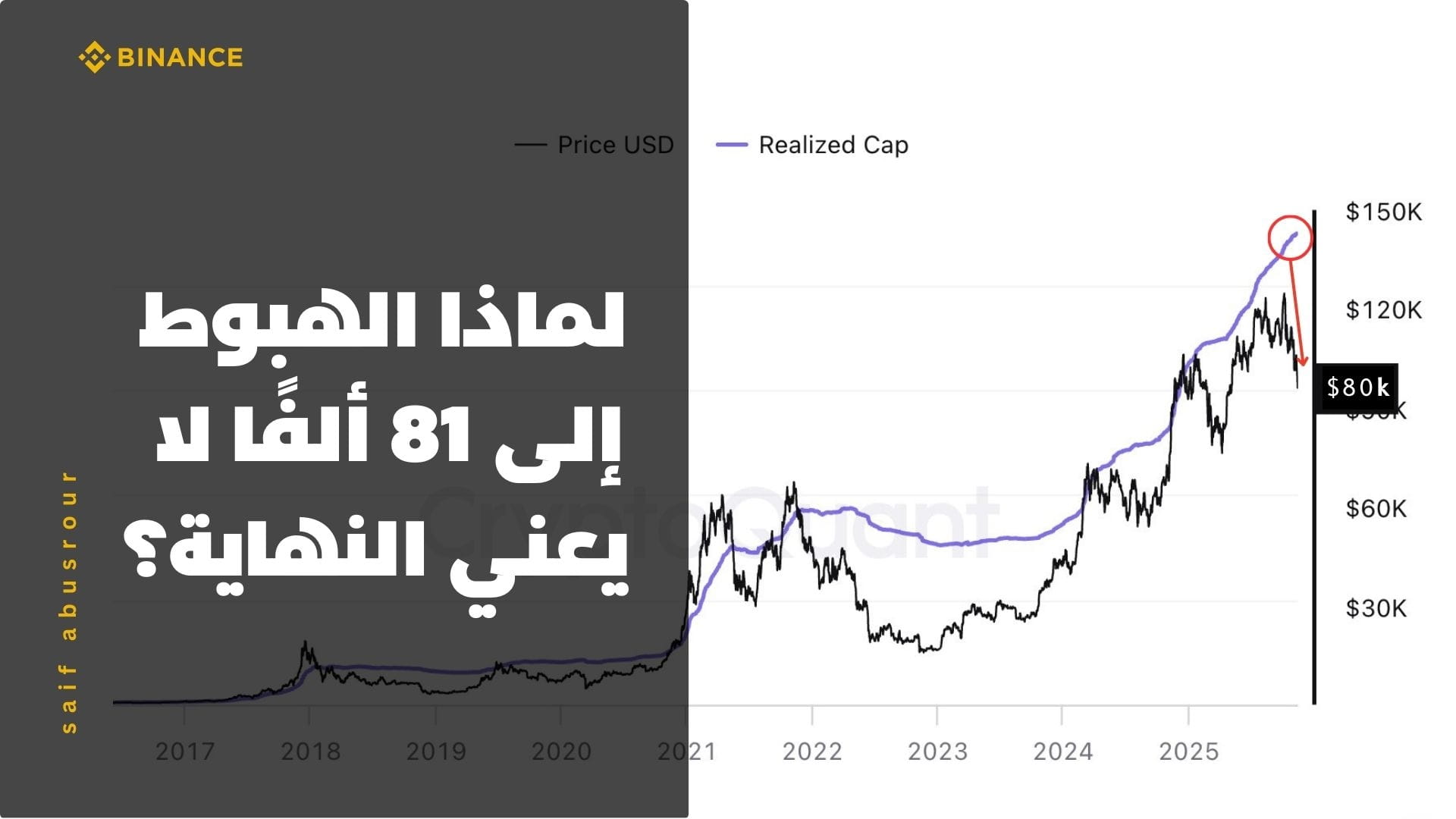 The hidden idea that 99% of traders do not realize here is that the real question is not: 'How much has Bitcoin dropped from the peak?' but rather: 'Has the realized value curve started to contract or is it still expanding?' The percentage drop from the peak can be deceptive; you might see a 30-40% drop in the middle of a bullish cycle, and you might see the same percentage at the beginning of a long winter. The difference is that a true winter comes when net capital starts to exit the network, and the purple value line shifts to a horizontal or downward path; as long as the line in the chart you have continues to rise towards the 150 thousand area on the chart scale while the temporary price is below it at 82 thousand, you are likely facing a harsh chapter of the same cycle, not a completely new film.
