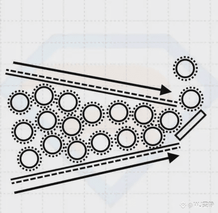 现在,假设会议室中的每位成员都希望离开,然而,在他们朝向出口的行进过程中,走廊逐渐变得狭窄,而出口的门却相对较小,如下图所示。