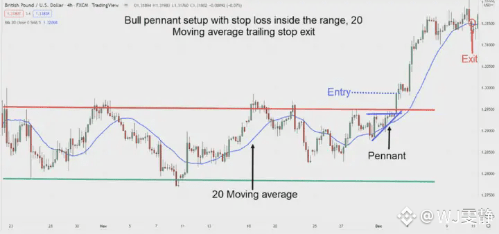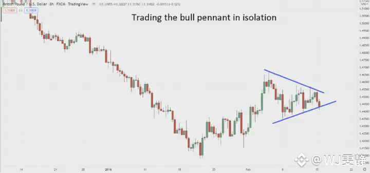 鉴于牛市三角旗形态是一种趋势延续的模式,因此已经默认排除了那些不利于此类设置的区间市场环境。