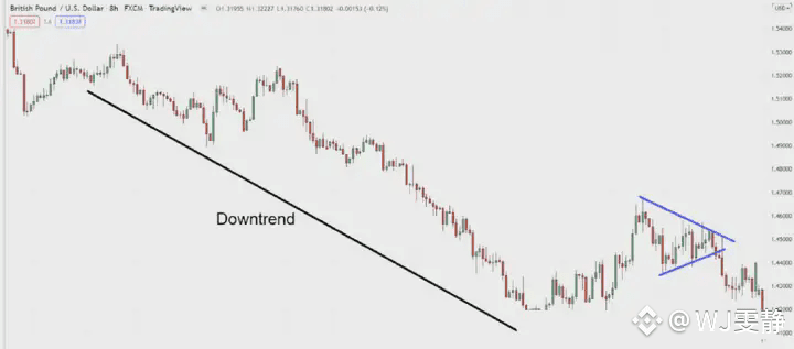 您可能会产生疑问:您之前提到牛市三角旗是一种趋势延续形态,为何我们会在下降趋势中应用它?