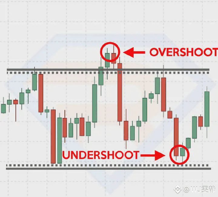 因此,若您在价格摆动的高点上方设置买入止损订单,可能会出现以下情况:价格可能会轻易触及您的买入止损单,随后迅速反转,重新回到既定的价格区间之内(即发生超调),如下图所示。