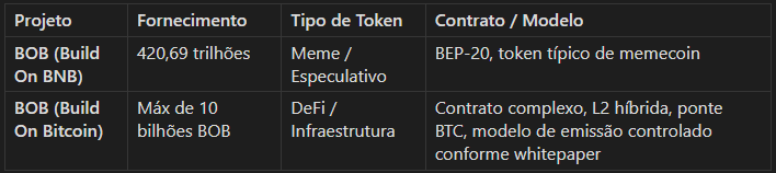In recent days, confusion between two coins called 'BOB' has skyrocketed in the Binance Square community. Some people claim that the 'old BOB' (BOB — Build On BNB) would be 'fake' or misleading, and that the 'new BOB' (Build On Bitcoin) would be the 'real' version. However, this narrative is fundamentally misguided: they are two distinct projects, with completely different purposes, structures, and risks.