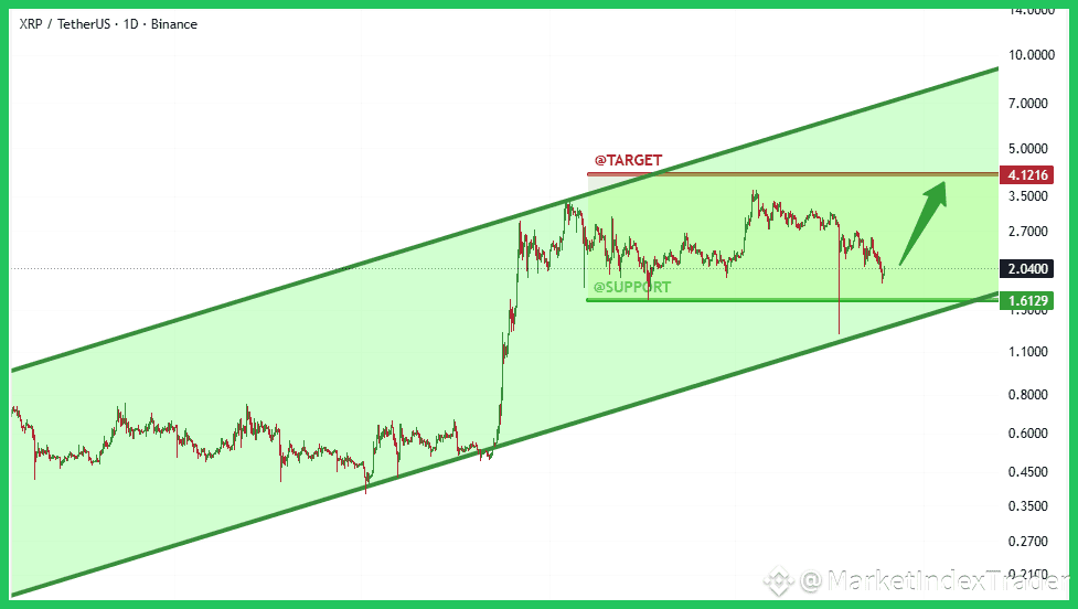 Technical Analysis: XRP has perfectly respected its long-term ascending channel structure on the daily timeframe. Price has tested and held the critical support band between $1.61 and the immediate $2.04 level after a major volatility shakeout. As long as we maintain $1.61 as macro support, the path is clear for a strong bullish push toward the consolidation high resistance at $4.12. Breaking $4.12 would confirm the next phase of the bull run.