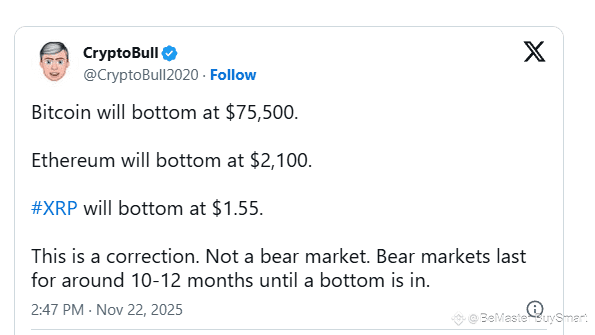 His post included clear price levels for major coins. He said that Bitcoin will bottom at $75,500 and that Ethereum will bottom at $2,100. He then gave his target for XRP, placing its potential bottom at $1.55. This would place XRP close to the bearish target recently set by another analyst.