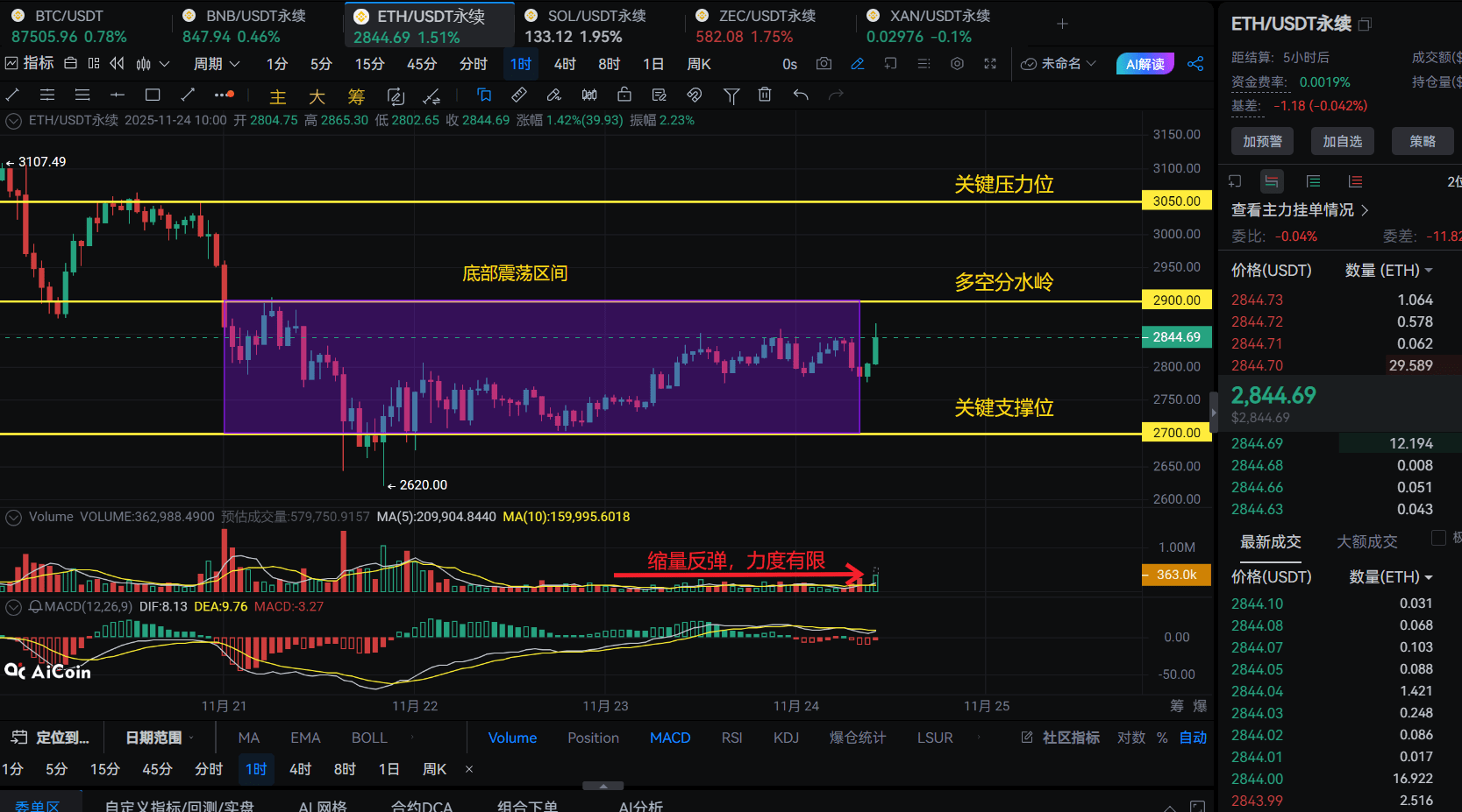 Brothers, this weekend ETH pulled back from 2600 to 2860, it looks like a recovery, but I have to say a big truth—this rebound is too inflated, don’t rush to go ALL IN! Do you think the reversal has come? Be careful of the market makers smashing the market to make you stand watch! The most critical question now is: is this rebound a real reversal or a false peak? Will there be a sudden change today?