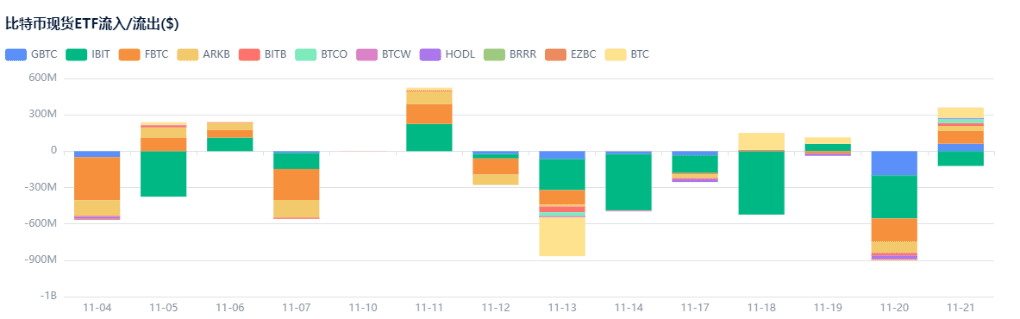 ● The U.S. Bitcoin spot ETF is undergoing the most severe test since its approval for listing in January. As of November 21, the net outflow of all Bitcoin ETFs in November has reached $3.79 billion, breaking the historical record of $3.56 billion set in February.