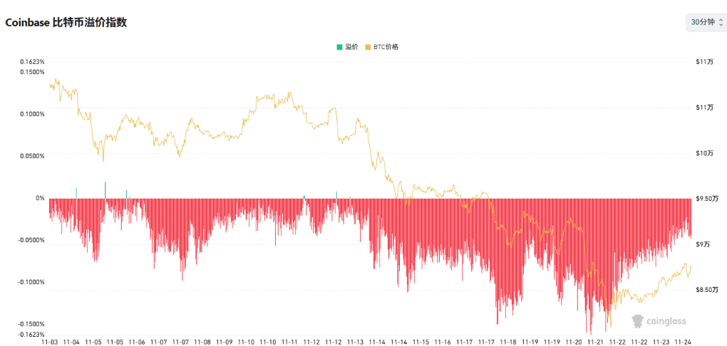 Historical data shows that the Coinbase premium index has a leading relationship with Bitcoin price trends. When the premium is deeply negative, it often signals that the short-term price bottom is approaching. Similar patterns have emerged in historical cycles such as 2019 and 2022—institutions have shown extreme pessimism in local bottom regions before the market rebounds.