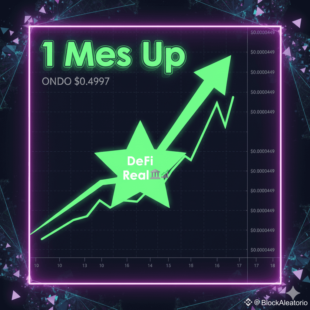 1 Mes (DeFi Útil): ONDO – Para finanzas reales en cadena. Precio ~$0.4997, vol $300M. Por qué: Activos reales como bonos en crypto crecen. Real: Partnerships bancos. Mi vista: Sube a $1.2 si adopción. Vigila 30 días. #ONDOPotential