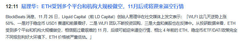 The event of "institutions massively shorting ETH" exposed by Yi Lihua is far from simple on the surface. Analyzing institutional behavior, when multiple platforms short simultaneously, it often indicates that market sentiment has reached a freezing point, which is precisely the darkest moment before dawn.