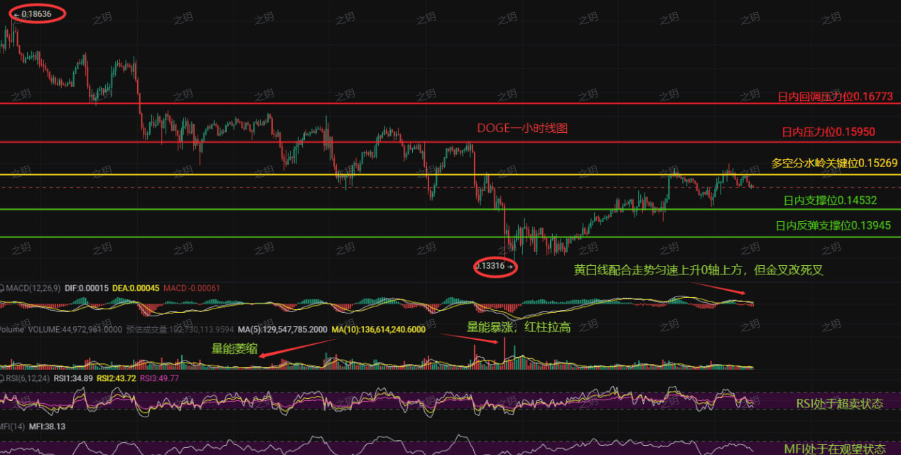 Will DOGE suddenly surge tonight? Or will it continue to decline? The key will provide real-time updates in subsequent articles, so don't forget to follow!
