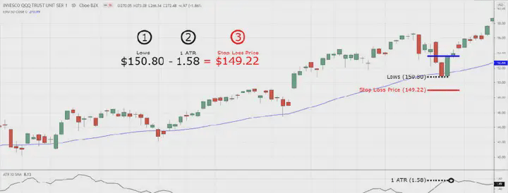 (3)从最低支撑价格点减去当前的ATR值——这就是您的止损点。