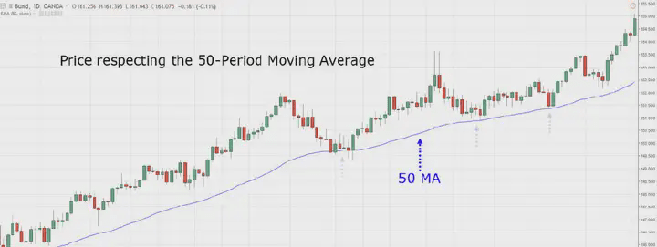 移动平均线是图表上历史价格的平均值的指标。在趋势市场中,价格可能会遵循移动平均线,因为它揭示了潜在的买入(或卖出)压力,从而形成一个价值区域,以下是一个示例。