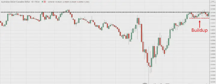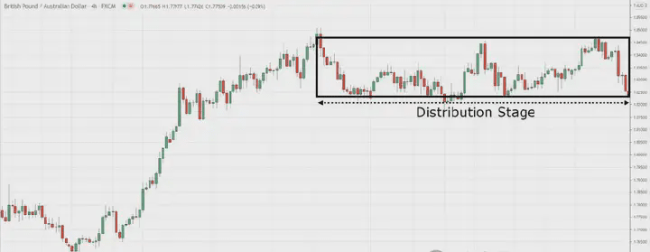 与此同时,看跌的交易者仍然进入市场,希望看到趋势持续。在这种背景下,当您同时感受到买入和卖出的压力时,市场(也称为区间市场)将达到一种平衡状态,然而,仅仅因为市场处于积累阶段并不意味着它会突破并走高,它也有可能进一步下跌。