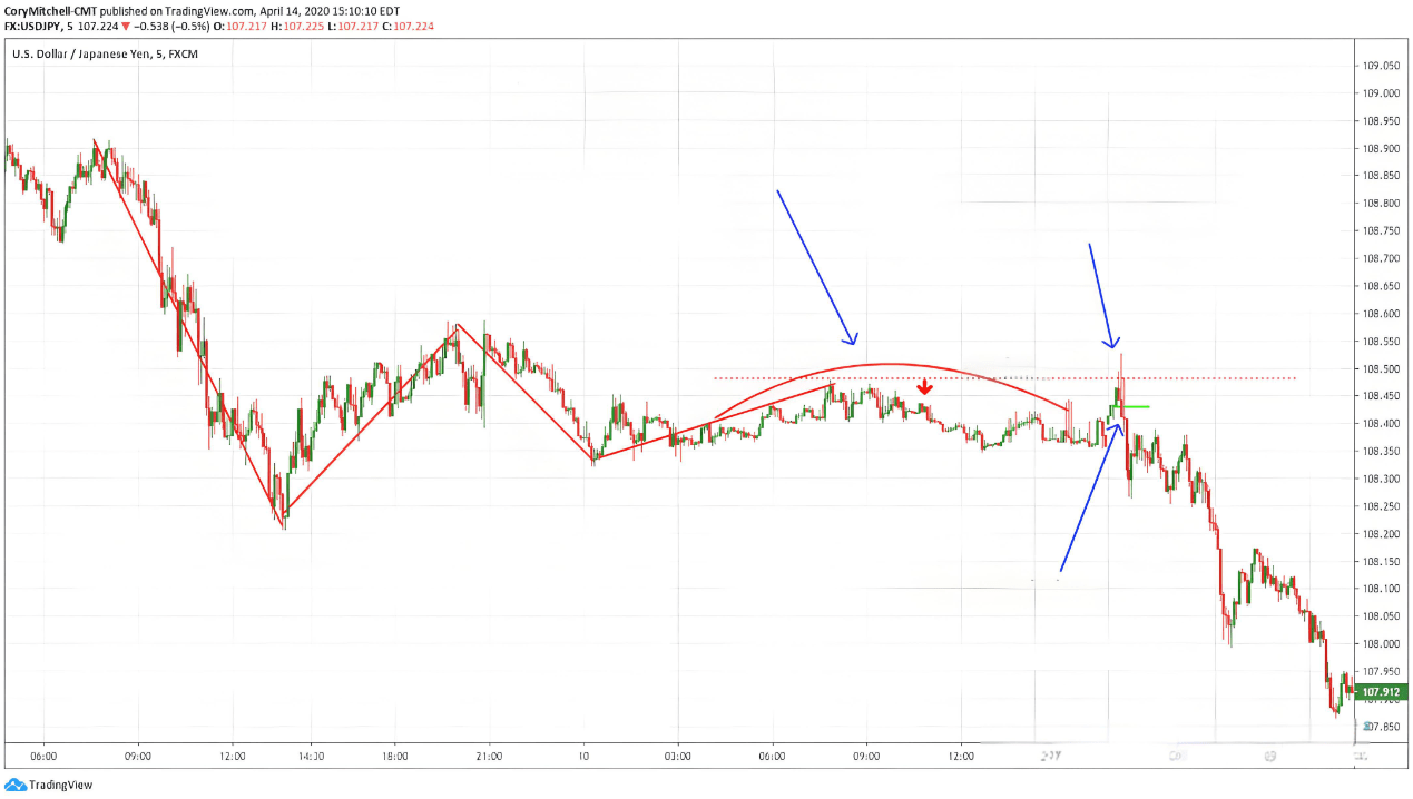 False breakouts can happen. Sometimes the price will make a brief, rapid surge in the opposite direction, but if this surge fails quickly and all signs still point to lower prices, we hope to re-enter this trade. Price action still shows downward potential. The concept associated with false breakouts is false reversals. This refers to trends that seem to be reversing but then quickly return to the original trend direction.